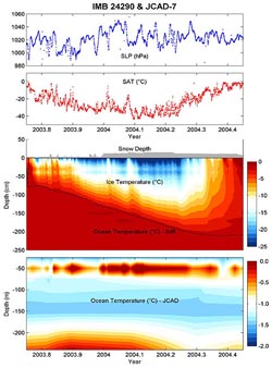 Dramatic changes in Arctic climate have been noted during the past two decades. It should be noted that many of these changes were first observed and studied using data from the IABP, which is analyzed and made available to the community by the PSC. For example, IABP data were fundamental to Walsh et al. (1996) showing that atmospheric pressure has decreased (Fig. 2), Rigor et al. (2000) showing that air temperatures have increased (Fig. 3), and to Proshutinsky and Johnson (1997); Steele and Boyd, (1998); Kwok, (2000); and Rigor et al. (2002) showing that the clockwise circulation of sea ice and the ocean has weakened (e.g. Fig. 2). Data from the IABP has also been assimilated into the global temperature data sets (e.g. Jones et al., 1999). All of these results relied heavily on IABP data. And, as such, maintaining and enhancing the IABP has been identified as a priority for the Study of Environmental Arctic Change (SEARCH).